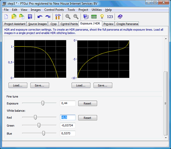 Also new in PTGui Pro 7.4 are sliders for adjusting the exposure and white balance of the panorama