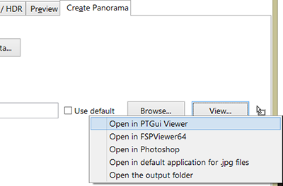 panorama from PTGui to Photoshop, regardless of the projection, by clicking on the View button in the Create Panorama tab (see the above screenshot).